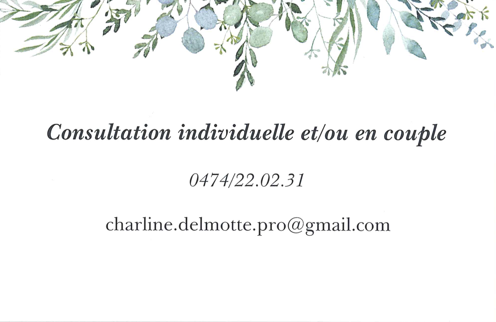 La consultation dure entre 45 et 60 minutes et coûte 45€ (seul•e ou en couple). Toute consultation peut être annulée au plus tard 24h avant le RDV: après ce délai, le montant de la consultation sera dû.